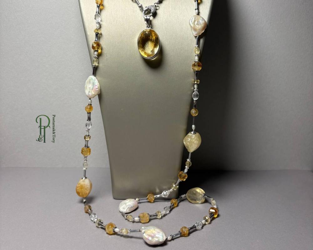 👑✨Элегантный сотуар с цитринами и жемчугом барокко прекрасно дополняет повседневные образы!
