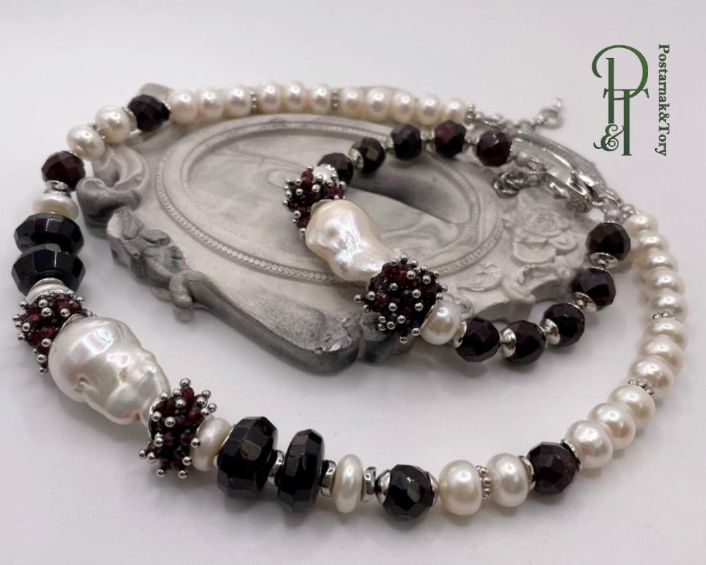 👑 Роскошное колье "Де Монсоро" вашему вниманию. Эффектное сочетание жемчуга с гранатом в разных формах!