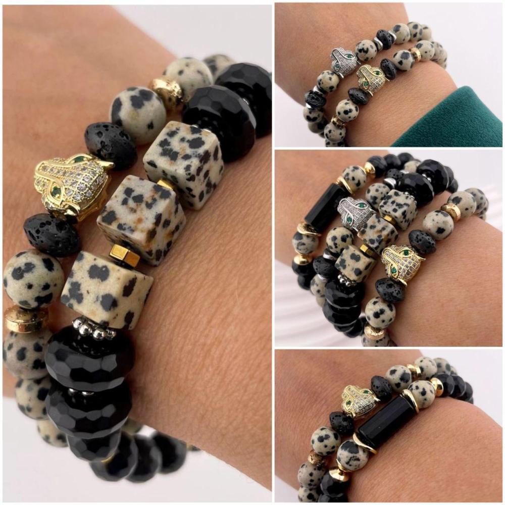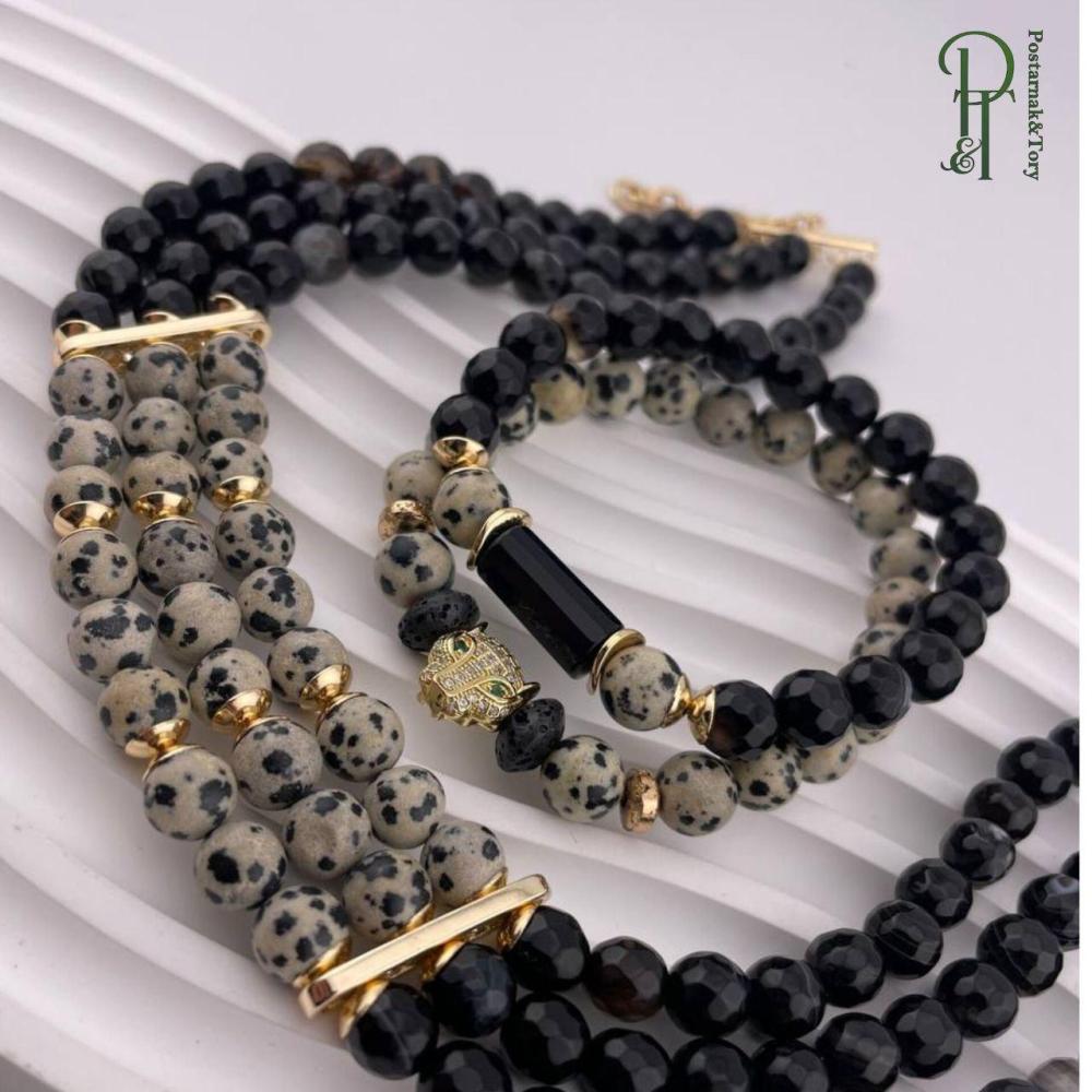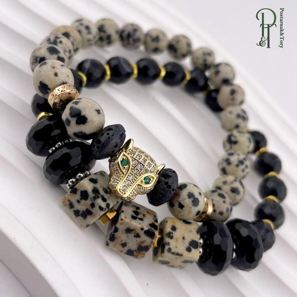 Сет браслетов с леопардом, яшмой, ониксом и агатом