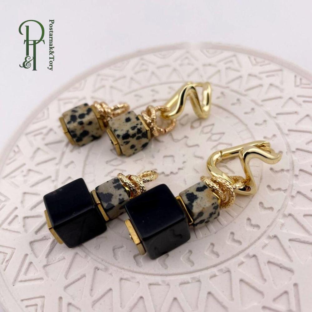 Стильные серьги-трансформеры с ониксом и яшмой далматин великолепно дополняют чокер "Шарлиз". Длина 4 см. Вес одной серьги 6 гр.