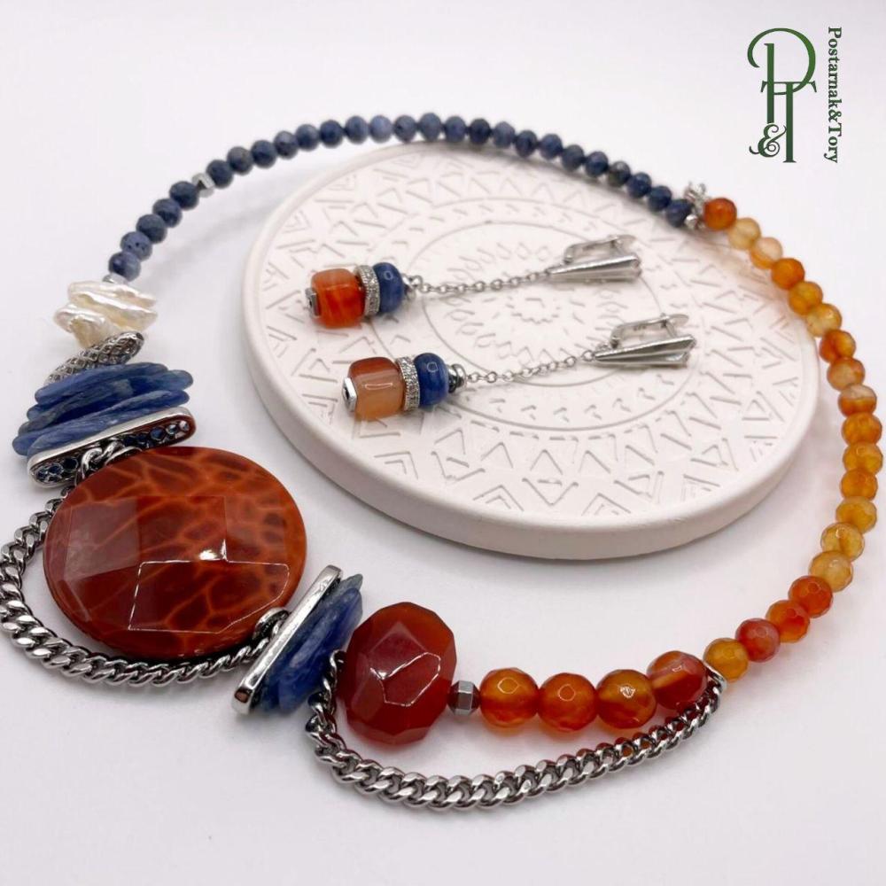 Невесомые и динамичные серьги с сердоликом и кианитом на цепочке будут прекрасно сочетаться со всеми украшениями из коллекции «Африканские мотивы»!
