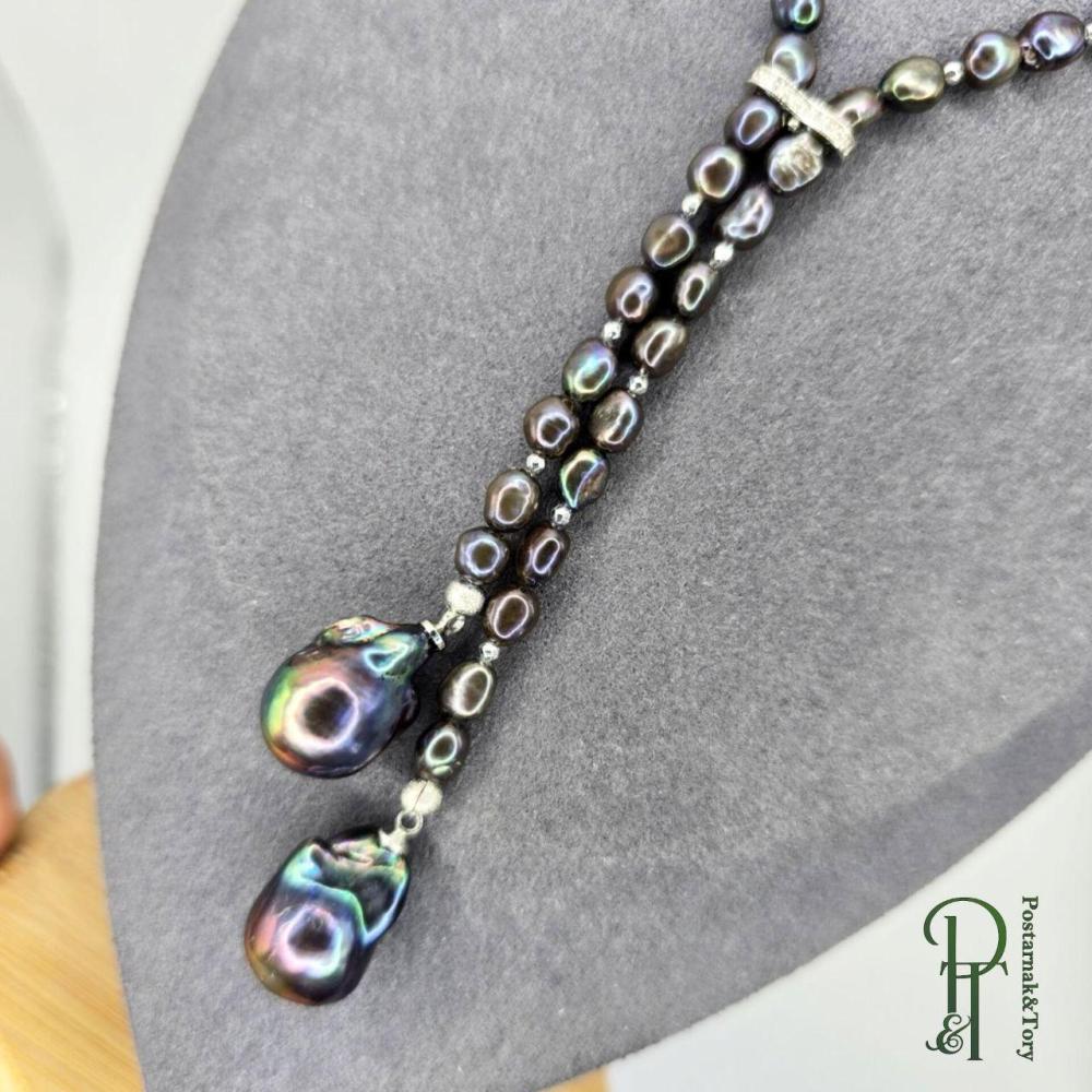 Длина до перемычки 40 см, длина жемчужных гроздей 9 и 11 см. Возможно сделать в другом размере. Жемчуг натуральный, культивированный. Фурнитура Корея premium. Колье прекрасно дополнят серьги с жемчугом барокко.