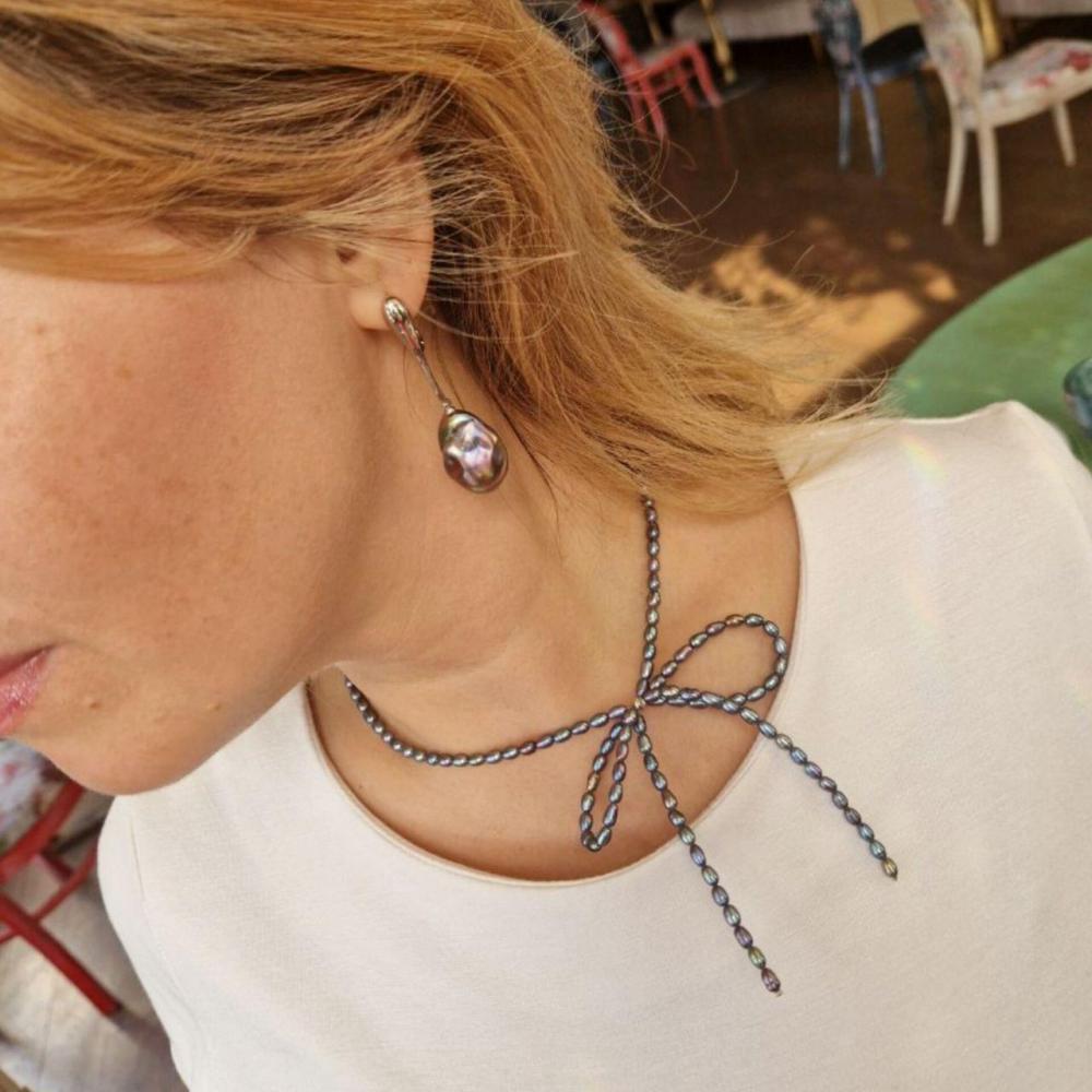 Жемчужное колье-бантик несомненно сделает ваш образ стильным и индивидуальным!