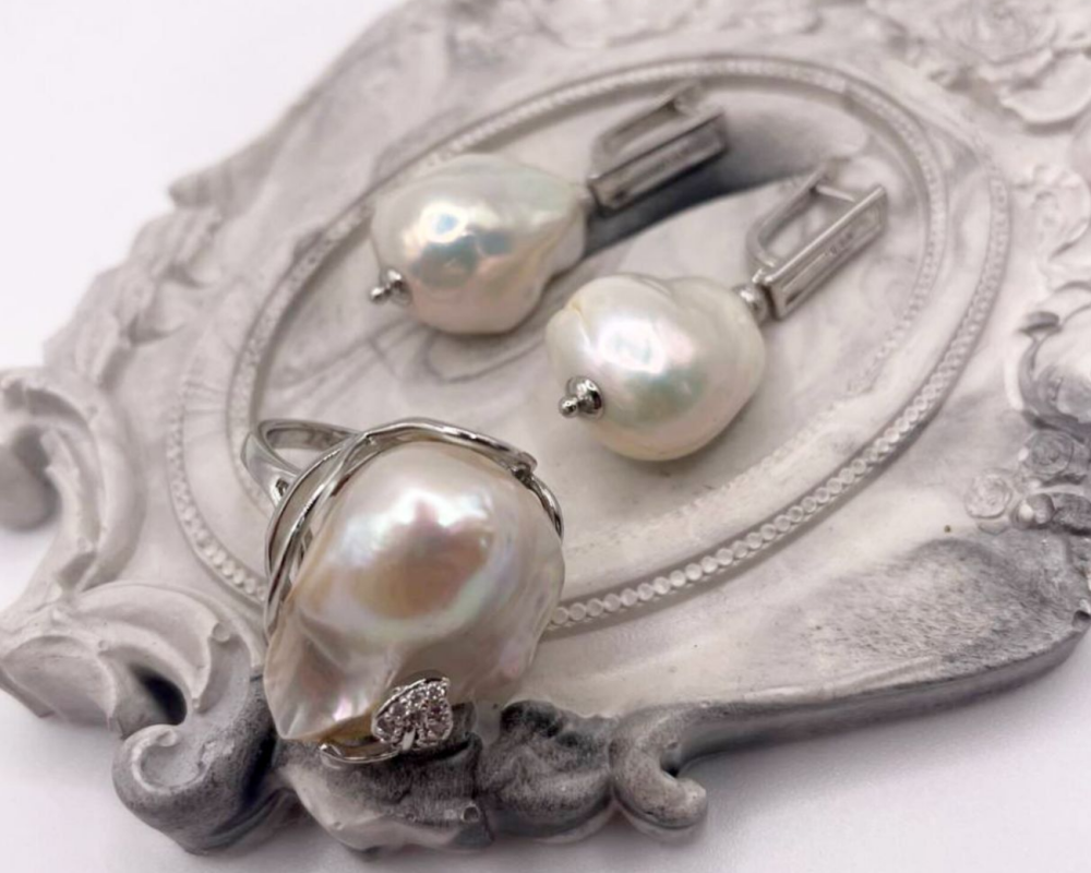 Каждая жемчужина барокко уникальна, поэтому кольцо будет эксклюзивным. Перед отправкой, присылаем фото. К кольцу прекрасно подойдут серьги с жемчугом.