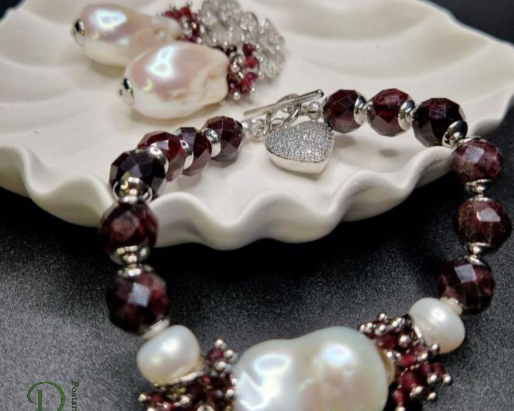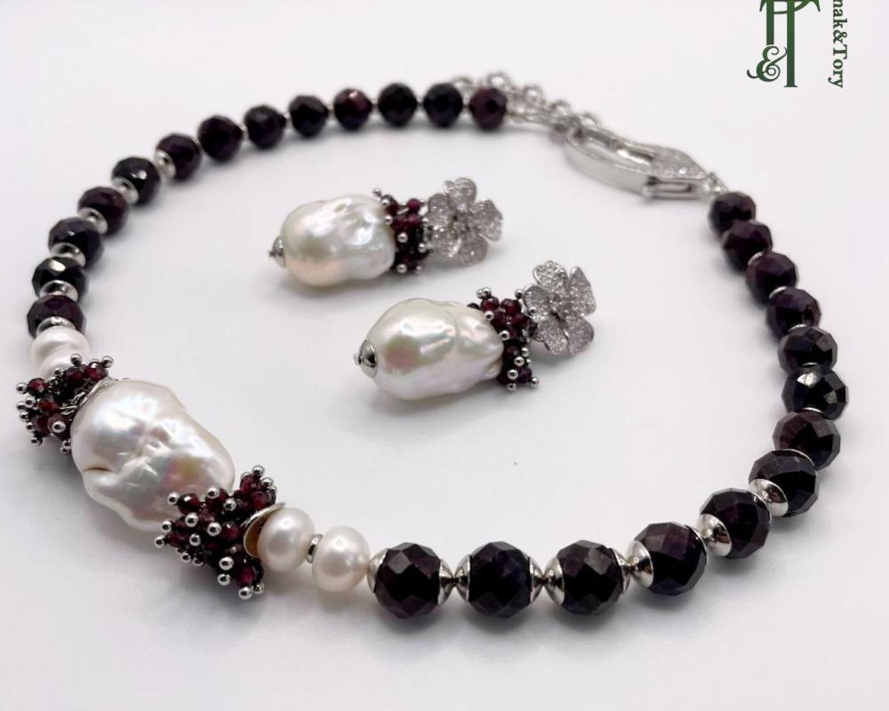 Серьги с жемчугом барокко и гранатом