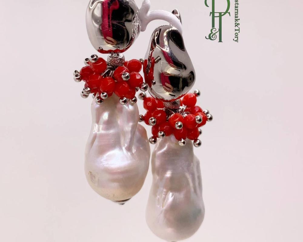 • Серьги с более крупным барокко - 6900 р. Вес одной серьги 10 гр, длина 5 см. Возможно выбрать другие швензы, а также сделать с фурнитурой под золото.
