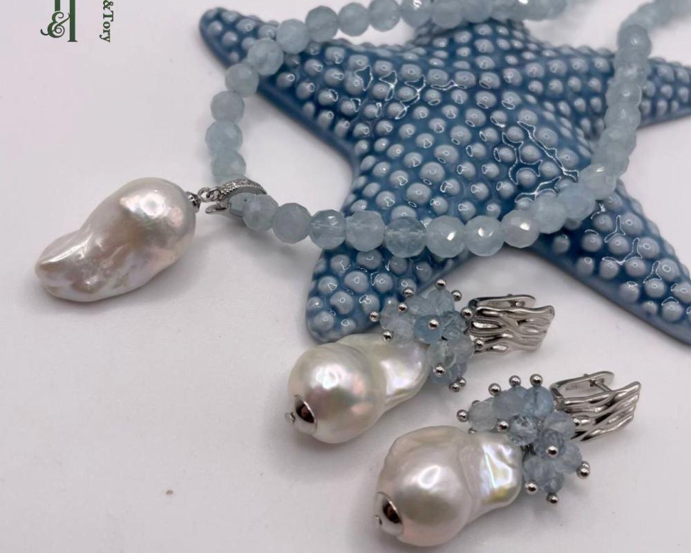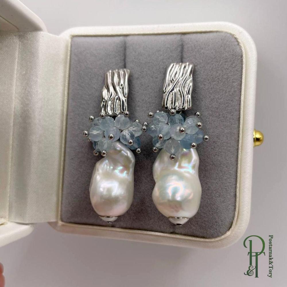 Серьги с жемчугом барокко и аквамарином